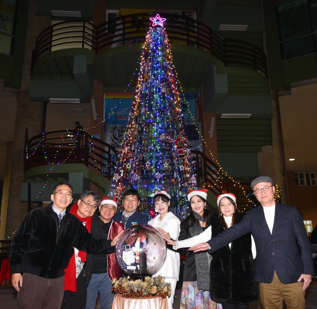 松山社區大學結合台北均衡扶輪社及利河伯使徒中心,週末在中崙高中圓心廣場立起高達7公尺多的聖誕樹,點燈為「松山之春」寒冬送暖系列關懷活動拉開序幕。