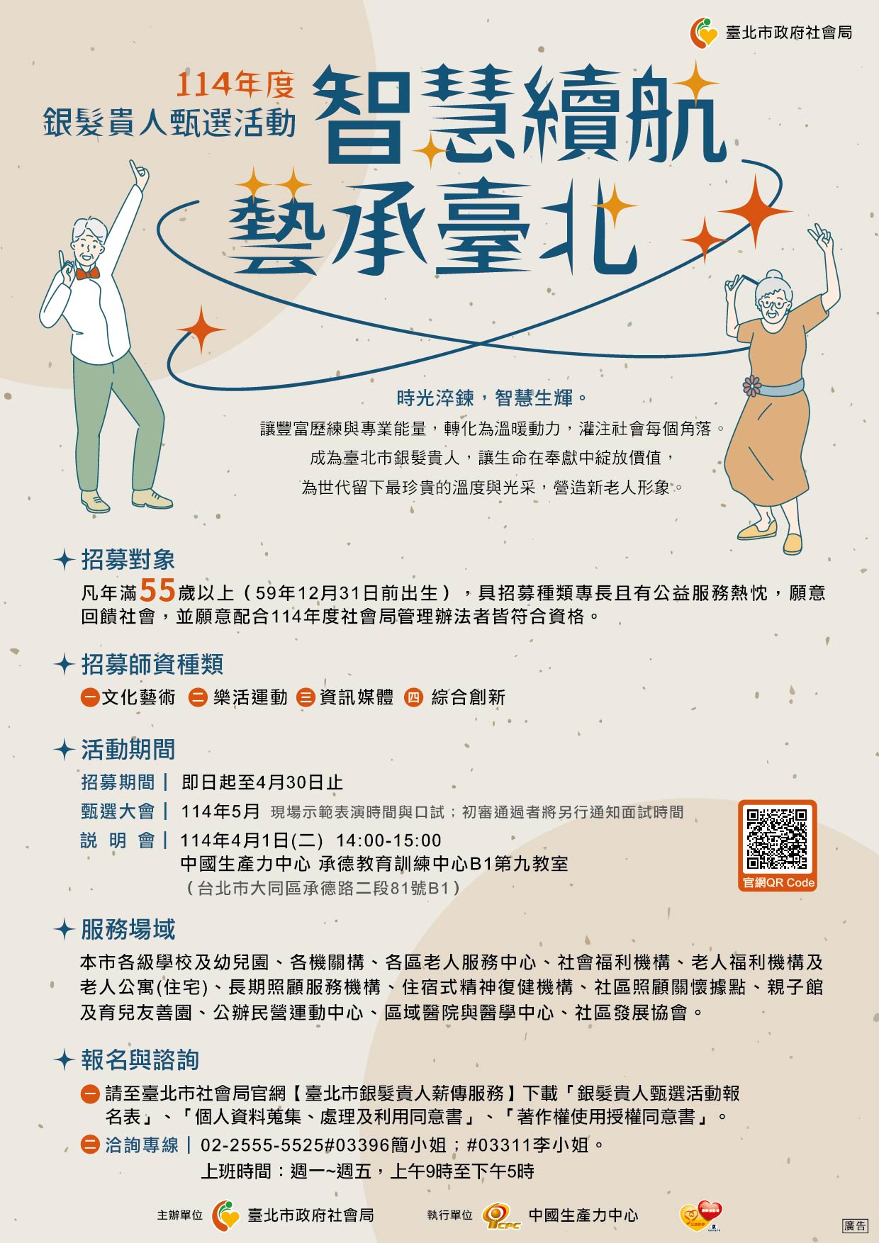 智慧續航.藝承臺北 114年度銀髮貴人甄選活動