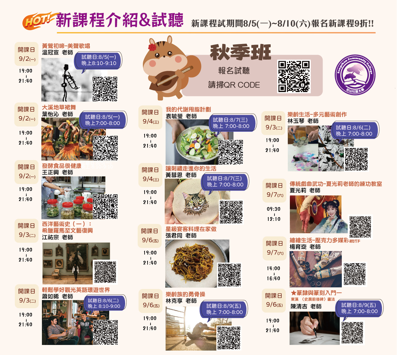 113-2秋季班新課程試聽囉! 8/5(一)~8/10(六)