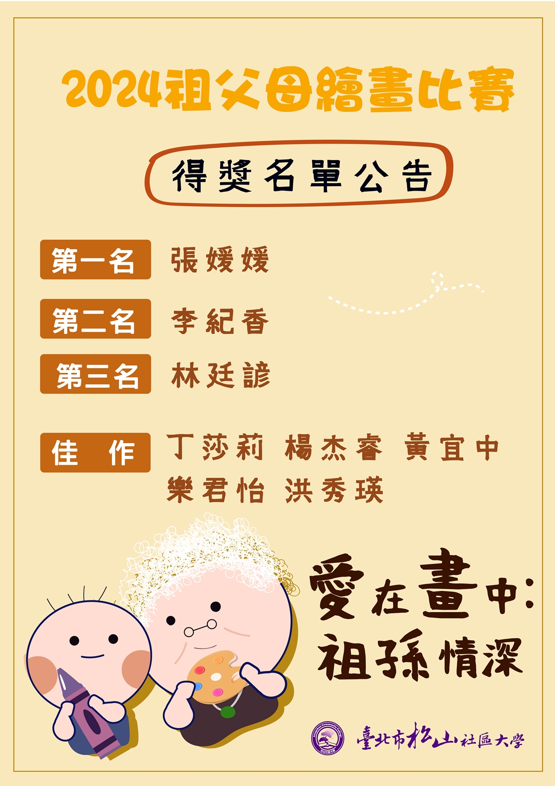 「愛在畫中:祖孫情深」祖父母繪畫比賽得獎名單